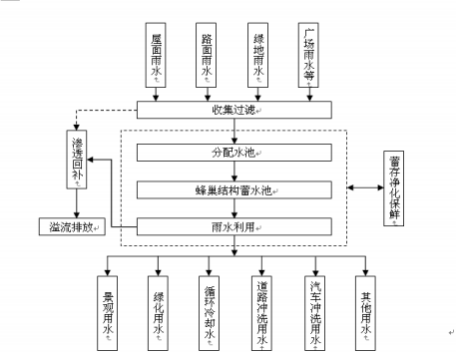 建筑與小區、城市道路、城市綠地與廣場、城市水系的雨水收集利用工 程。