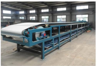6、膠帶裙邊及擋板:采用EP200 四層聚酯布的環(huán)形橡膠帶,膠帶裙邊采用組合結(jié)構(gòu)即波形裙邊與平行膠帶粘合而成,這種結(jié)構(gòu)裙邊伸縮性好,可避免裙邊經(jīng)過輥筒改向破裂,可防止料液從兩側(cè)流出。橡膠帶的上部構(gòu)造為中間一排排水溝槽,溝槽中間鉆有真空排液孔,鉆空部位為純橡膠無布層,可防止液體通過布層纖維進(jìn)入橡膠層導(dǎo)致膠帶分層,大大的延長了橡膠帶的使用壽命。