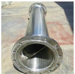 性能及結構特點:混合器主要由殼體和芯體組成。殼體由無縫鋼管或鋼板及連接法蘭組成,芯體由三個混合件交錯90°聯接而成,每個混合元件有四片彎折26°34'的交叉組成。GJQ 型靜態混合器依靠液體自身具有的功能,通過混合元件對液體切割分流、交叉混合和旋轉作用,使流經液體得到 快速充分的混合。水頭損失為0.3~0.8米,液體流速為0.6~1.OM/S。